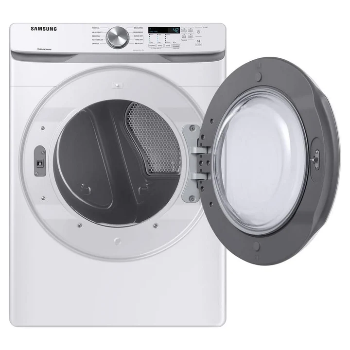 Samsung’s new dryers have advanced features like Sensor Dry, which optimizes cycle time and temperature to thoroughly dry without damaging your clothes. Also, with 7.5 cubic foot capacity and 10 preset drying cycles, you can do fewer loads in less time and fulfill almost every drying need.