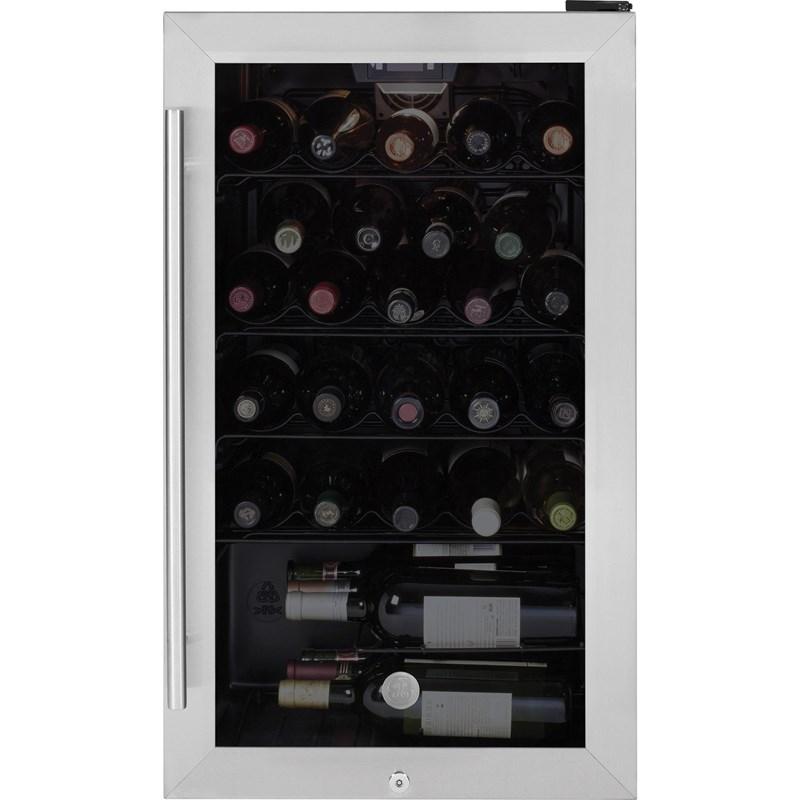 This GE wine center features auto defrost, 6 wine racks, adjustable temperature control and can accommodate up to 30 bottles of wine.