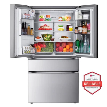 This 4-door Standard-Depth MAX™ refrigerator doesn’t just give you space—it allows you to make a design statement and stand out from the crowd. Knock twice on the InstaView® window to illuminate the contents within. Change the color of the InstaView® window lighting through MyColor™ on your LG ThinQ® app. Convert the versatile Full-Convert Drawer™ into a fridge or freezer, or choose from five temperature settings, with the touch of a button to provide optimal storage for a range of fresh or frozen items.
