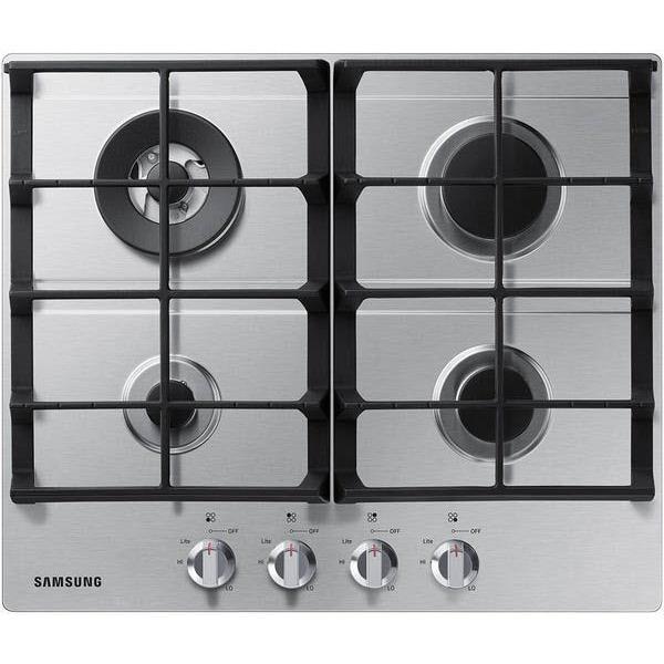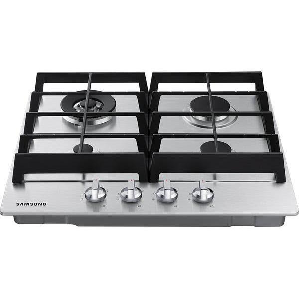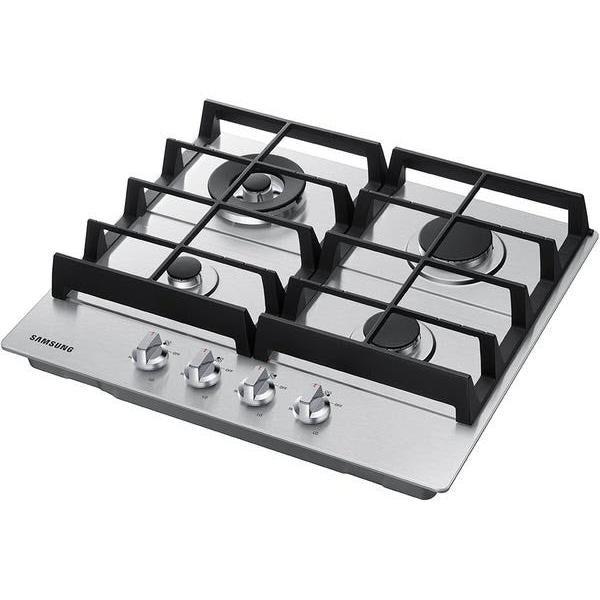 This 24-inch wide Samsung gas cooktop features 4 cooktop burners, cast iron grates and front controls.